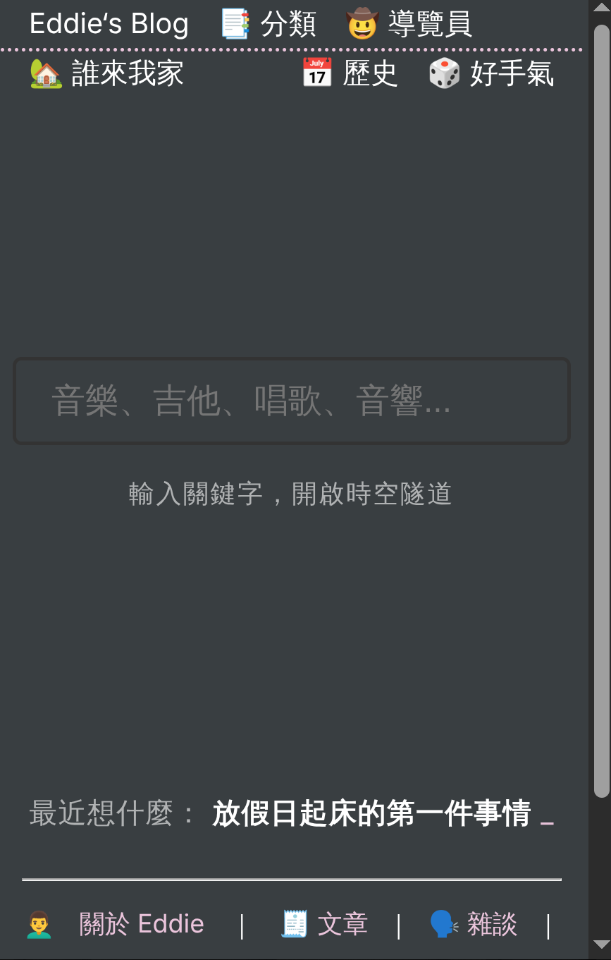 ~/Eddie's Blog ~/分類 ~/誰來我家 ~/部落滾 ~/🎲隨機 ~/📅歷史 ~/RSS