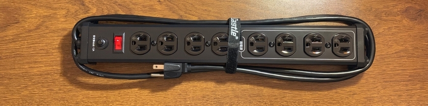 Eddie 用延長線接延長線,然後又接一堆設備,還接大功率的後級喇叭,這些都是有算過電流、確定不會出事的,如果是吹風機、烤箱、微波爐等等設備,請直接接牆壁上!