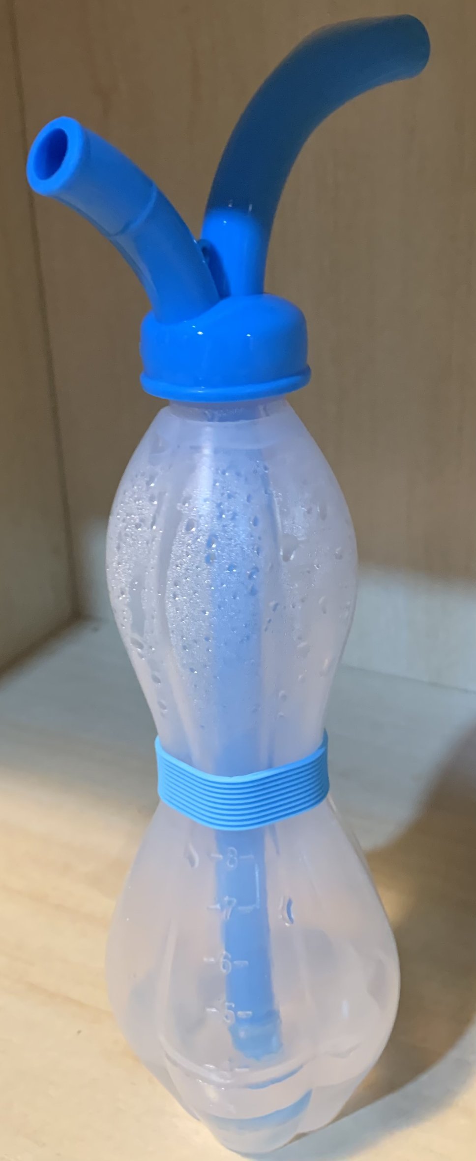 在這項產品出來以前,Eddie 其實也嘗試自己用手搖杯、寶特瓶瓶蓋挖洞等等方式自製練聲瓶,會有個很大的問題是「無法泄壓」,簡單說就是空氣進入水中,再往上浮的水面之上,要再立即散到瓶子外,否則杯內的壓力就會越來越大,而這個產品也很好解決了泄壓問題。