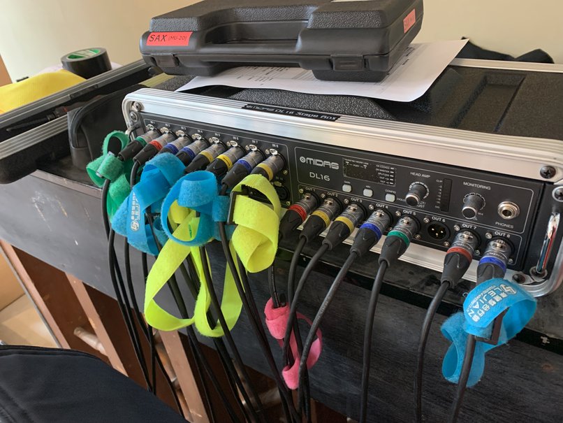 臺上樂器衆多,也走了 5 路的獨立監聽,因此線插的滿滿的!