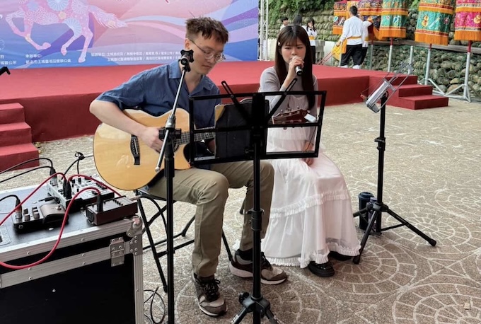 然而在一旁場控妹妹,其實隔天的活動要負責主持跟唱歌,所以有特別找個木吉他手來幫她伴奏。