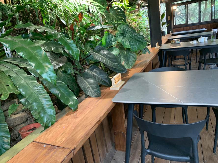 最後 Eddie 在三樓用餐,座位就選在山壁旁邊,還長了一堆植物,我都快分不清這是室內還是室外了,這房子不會漏水嗎?