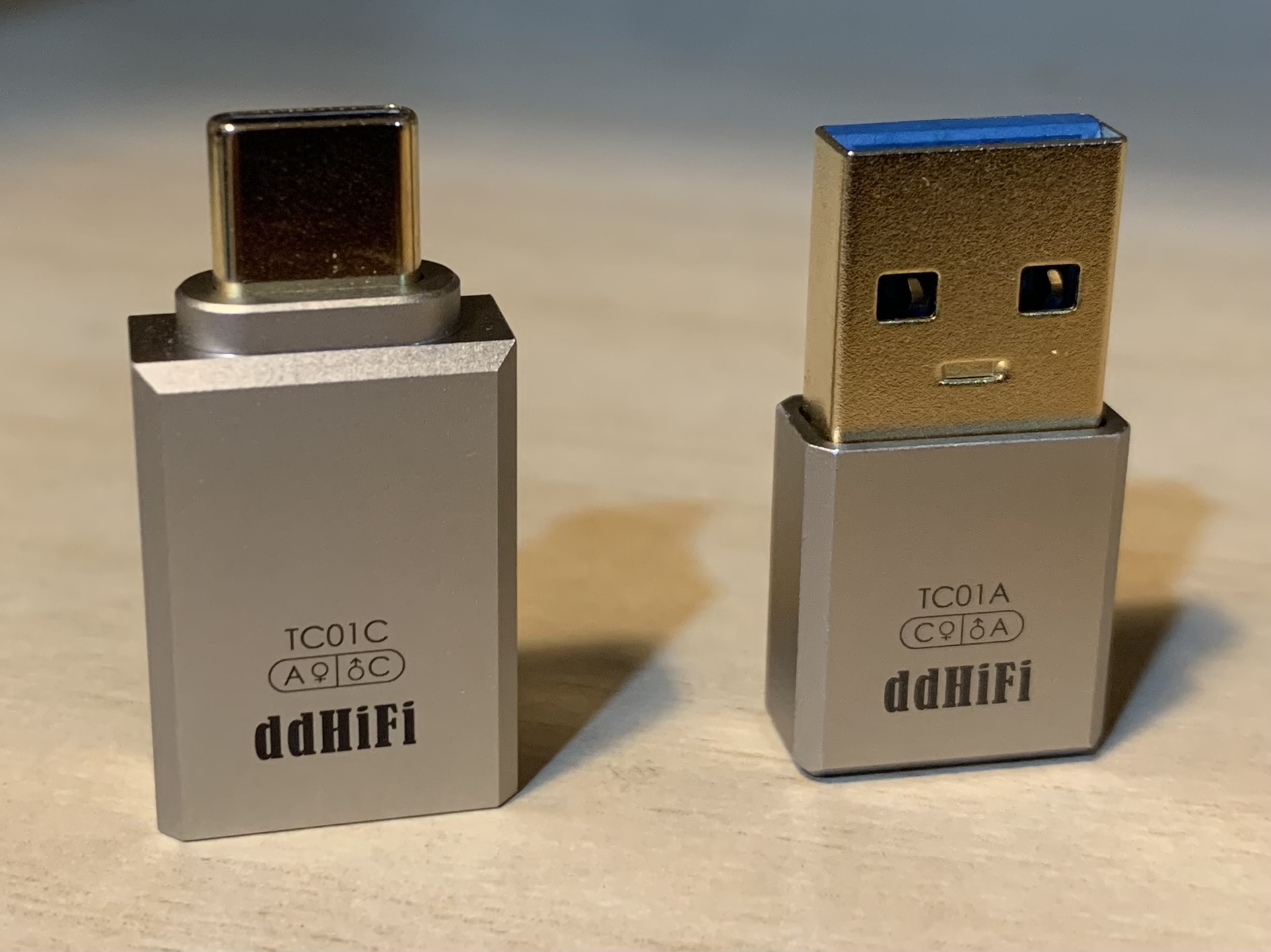 那麼問題來了,那用一堆高級材料來製作數位轉接頭、轉接線完全沒有意義吧?我一直以來也是這樣想的,直到後來我買了中國品牌 ddHiFi 的轉接頭,分別是 C 公轉 A 母、A 公轉 C 母,一個頭大約要臺幣 200 多,而一般同類型商品的價位大約在臺幣 50 左右,甚至淘寶上還能找到 10 元有找的品項。