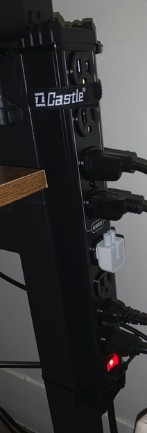 Eddie 用延長線接延長線,然後又接一堆設備,還接大功率的後級喇叭,這些都是有算過電流、確定不會出事的,如果是吹風機、烤箱、微波爐等等設備,請直接接牆壁上!